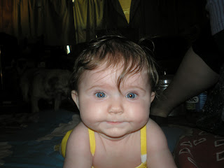 I have spent more time just slowing down last week as I was babysitting a cutie pie that loves all the stuff we have going on here. She has pet all the dogs, pet the goats and LOVES to watch the chickens. When we set on the porch she will follow the chickens as they walk by, she has gotten used to the roosters crowing now! When they first crowed when she was outside it startled her and she cried. Our porch goat was pretty curious of her, he came up to her when she was setting in her seat and smelled her and then had to taste her hair...lol. Since he was raised from a bottle he was used to everyone and LOVES to check everything new out. He sure didnt like her grabbing his ears though.